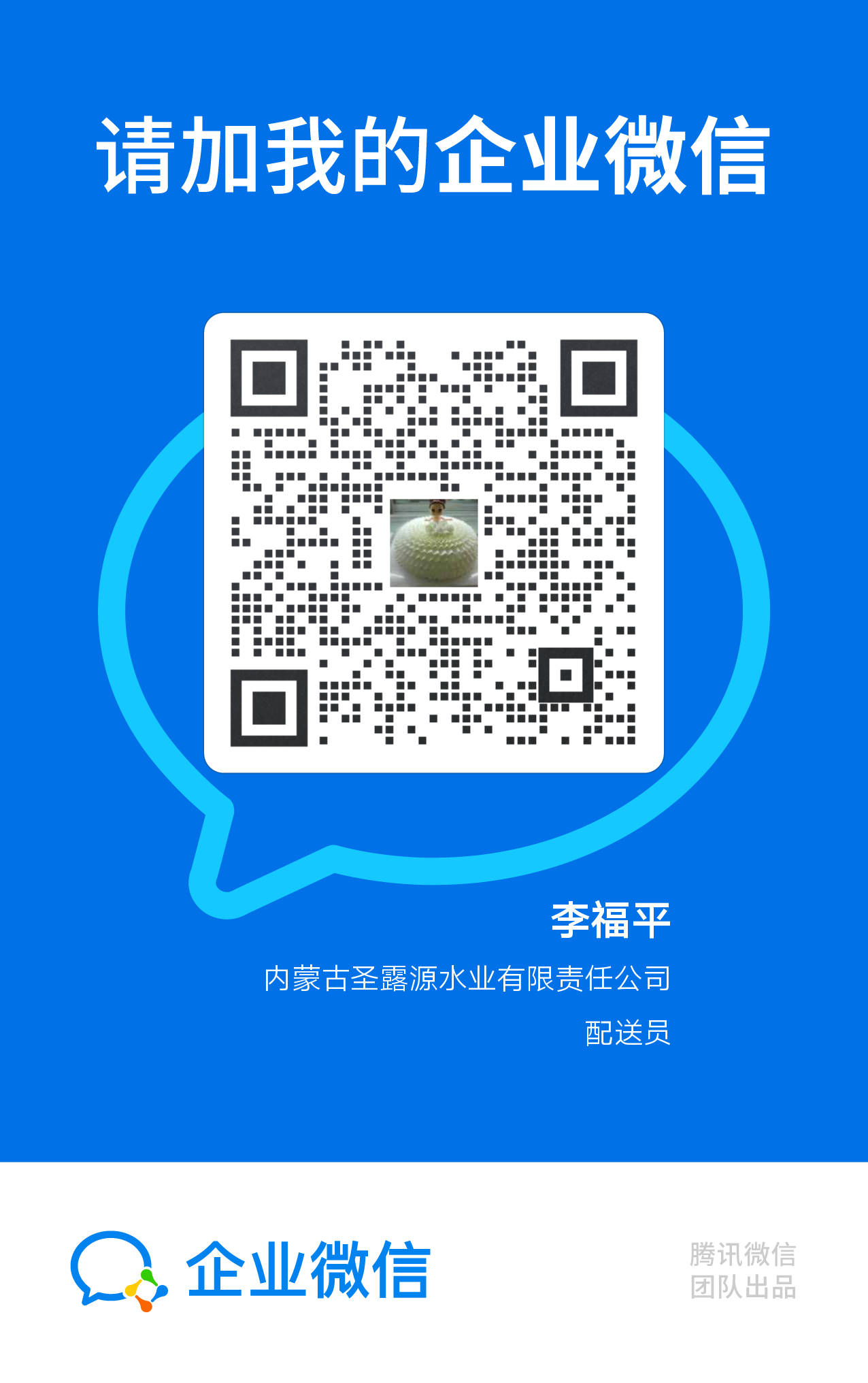 圣露源水业送水工个人企业微信名片