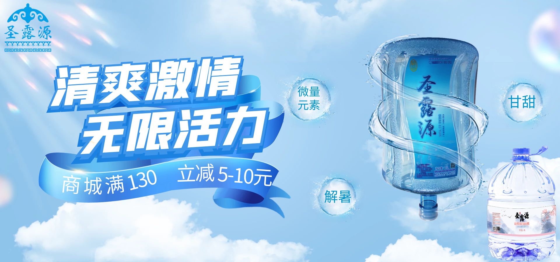 呼市桶装水--“圣露源水业桶装水”满130元立减5-10元。