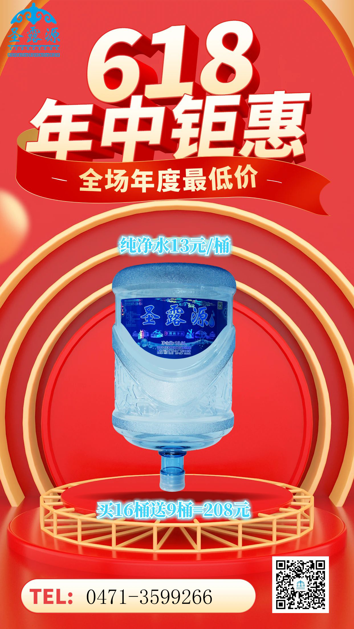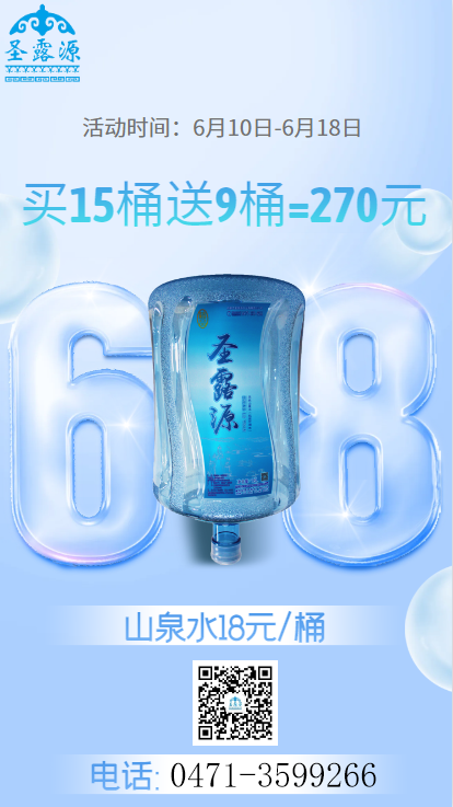 呼和浩特桶装水-圣露源水业7周年年中大促618桶装水年度最低价