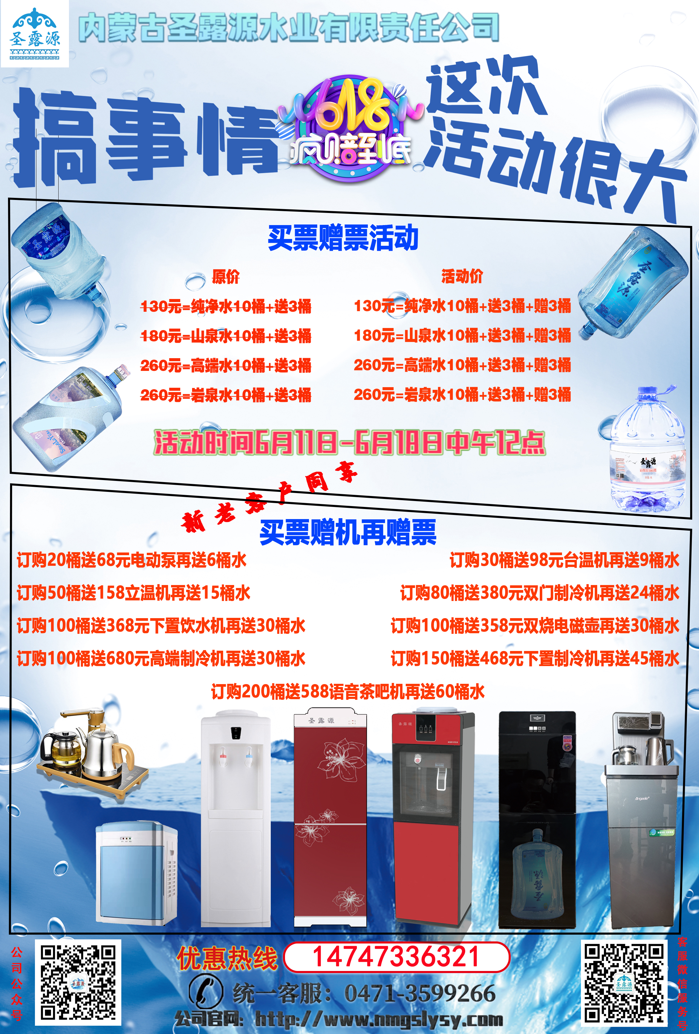 呼市桶装水配送提醒您:圣露源桶装水618厂庆 感谢有你 限量折扣