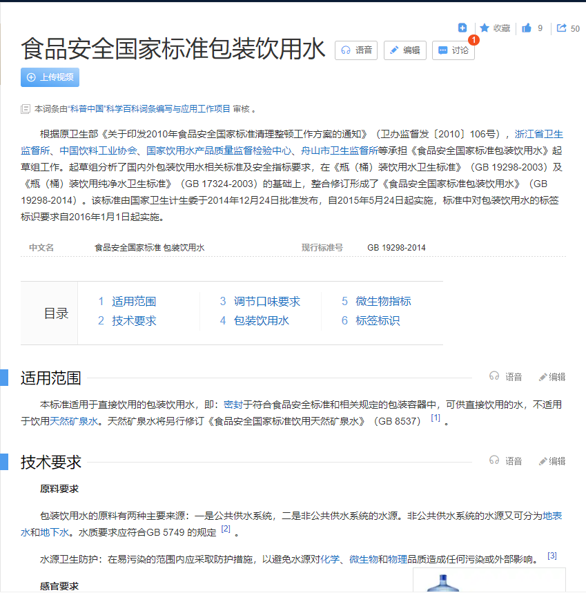百度百科《食品安全国家标准包装饮用水》点击查看大图